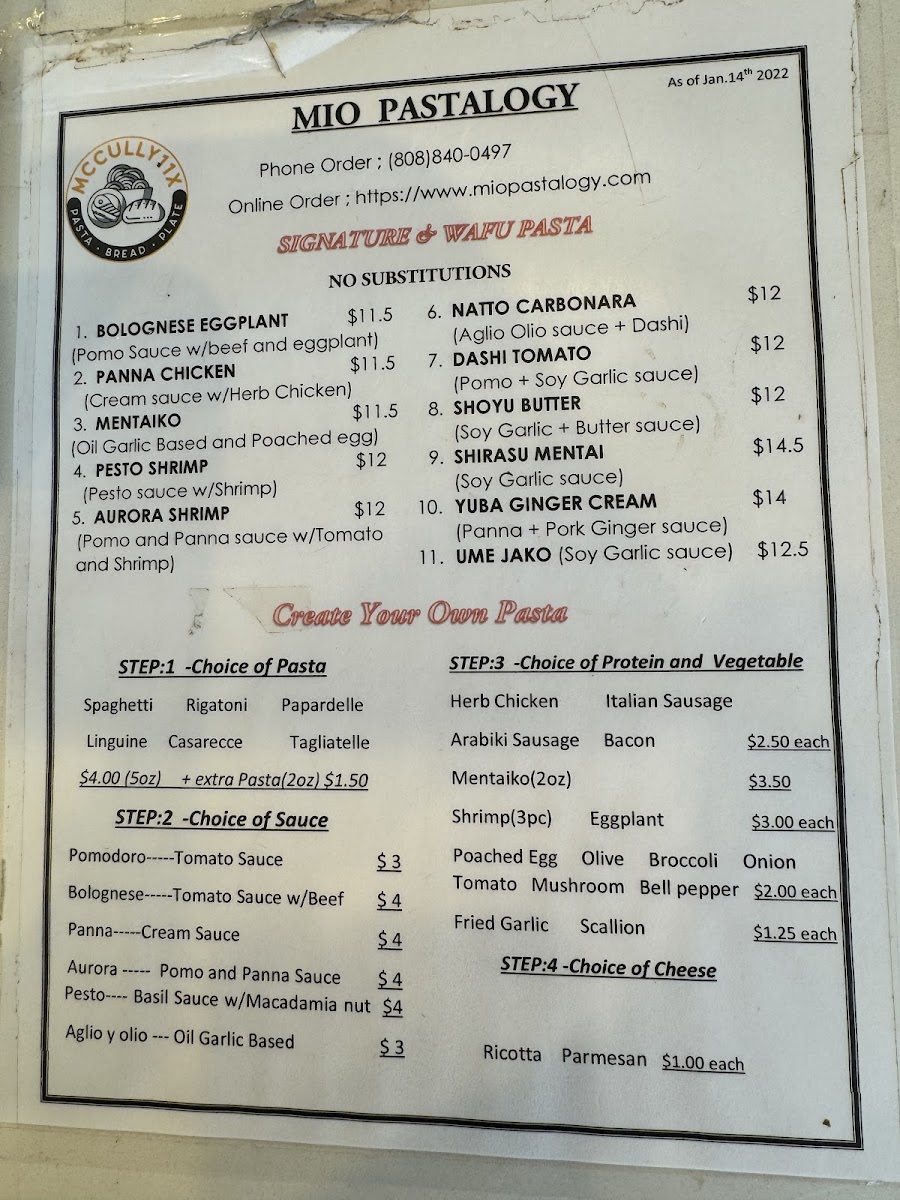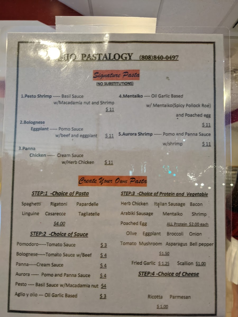 Tucked away on 1110 McCully St in Honolulu, Mio Pastalogy Menu feels like a little discovery you can’t help but share. As you look through the selections, the first thing that stands out is how customizable everything is. You choose your pasta, pick a sauce that actually matches your cravings in the moment, and then layer on proteins and toppings until it feels just right.